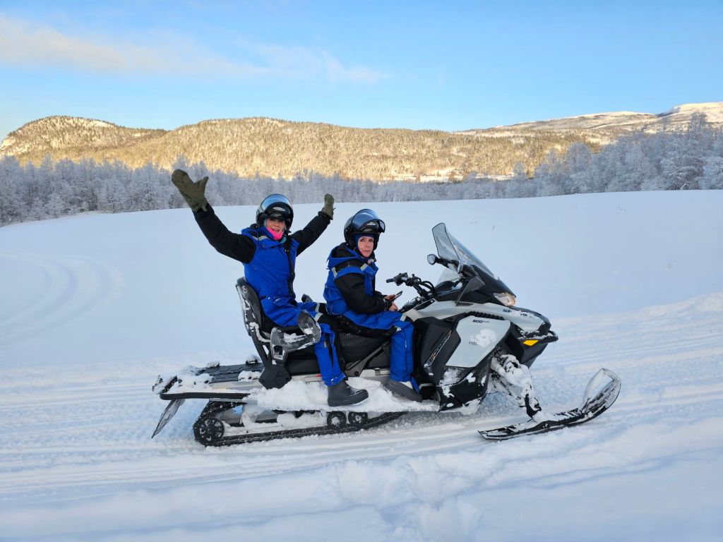 The next morning we drove 1.5 hours out to the Lyngen Alps for a snowmobile adventure. The scenery is unreal — crisp mountains, frozen lakes and soft winter light. My friend managed to tip us straight into a pile of snow and we had to be dug out, which we’re still laughing about.