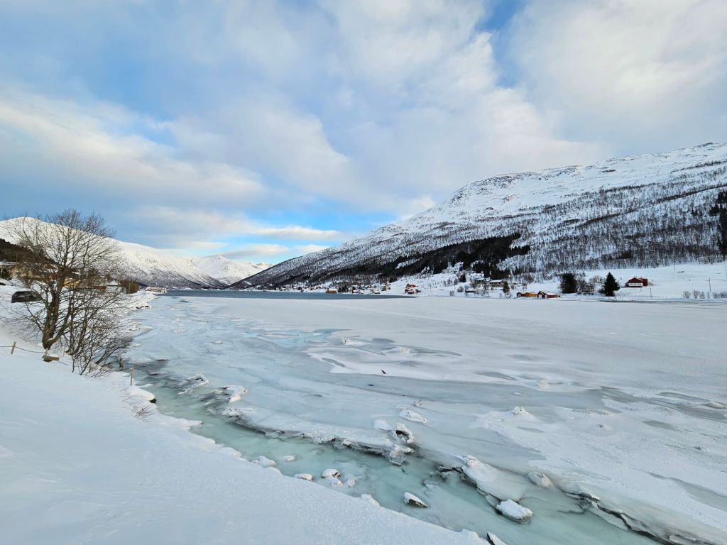 Colourful little fishing huts, tiny churches, icy beaches, still fjords, and barely anyone around. We explored all day, crossed the iconic Sandnessund Bridge with its amazing views, made snow angels, and wandered along a beach that was the coldest place I’ve ever been.